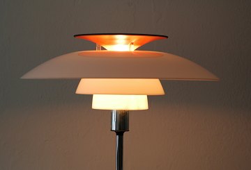 Poul Henningsen (1894-1967), PH 80 gulvlampe, skærme udført i hvid opal akryl, overskærm i sort polykarbonat og stander i højglansforkromet stål,