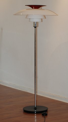 Poul Henningsen (1894-1967), PH 80 gulvlampe, skærme udført i hvid opal akryl, overskærm i sort polykarbonat og stander i højglansforkromet stål,