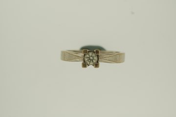 Solitairering af 14 kt. hvidguld, prydet med brillant på 0,25 Wesselton/VS, str 57, æske samt brillantcertifikat medfølger, vægt: 5,2 gr.