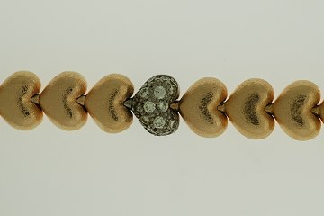 Ole Lynggaard hjertearmbånd i 14 kt guld, enkelt hjerte i hvidguld prydet med 14 brillanter, stemplet "Ole L 585" L. 19 cm, vægt: 41 gr. Super flot stand. Nypris: 28.000 kr.