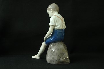 Siddende dreng på sten B&G nr.1757 H.22cm.