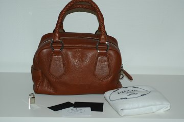 Helt ny Prada damehåndtaske, Model BL0265 Boston Bag fra 2008 kollektionen, udført i det smukkeste italienske læder, lille læder lomme til ID, Prada lås i sterling sølv.