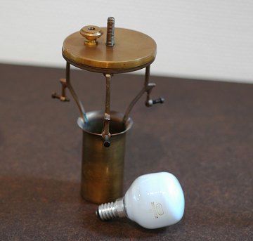 Poul Henningsen (1894-1967) PH 3½/2 bordlampe med stamme af bruneret messing, fod af brunlakeret metal, med gennemgående original afbryder, fremstillet hos Louis Poulsen ca. 1929.
