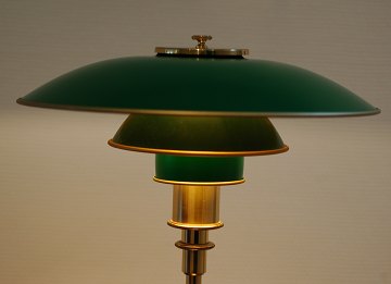 Poul Henningsen (1894-1967) PH 3/2 bordlampe. Udført i messing med grønlakerede metalskærme. Fremstillet hos Louis Poulsen. I super flot stand. H. 45 cm