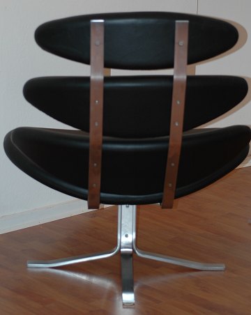 Poul M. Volther (1923-2001). Corona-stol model EJ 5, udført af fire polstrede skaller betrukket med sort læder, monteret på stel af børstet stål. Formgivet i 1961. Producent: Erik Jørgensen Møbelfabrik. H. 98 cm B. 89 cm