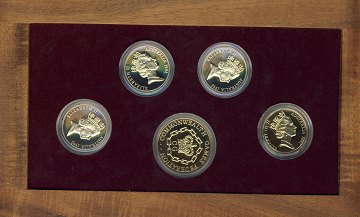 The Royal Ladies, sæt med 4 guldmønter på hver 16,95 gr og en medalje på 33,93 gr - alle i 22 kt. guld.