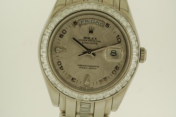 Rolex Oyster Perpetual Day-Date, herrearmbåndsur, ref nr. 18956br, kronometer i platin, meteoritskive besat med 2 diamanter,