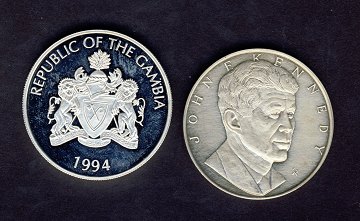 Gambia, 10 dalasi 1994 samt medaille også af sølv med John F. Kennedy