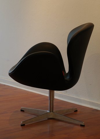Arne Jacobsen (1902-1971), Svanen i originalt sort læder, "svanen" svæver på en satinpoleret aluminiumstjernefod med returdrejefunktion, skallen formet af fiberglasforstærket kunststof med skumpolstring. Med laserprintet stelnummer.