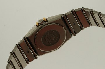 Omega Constellation damearmbåndsur i stål og med guld på kassen, quartzværk, safirglas, diam. 22 mm