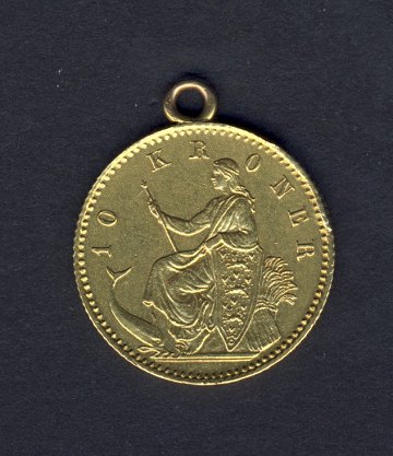 10 kr. 1890 GULD, kan bruges som vedhæng
