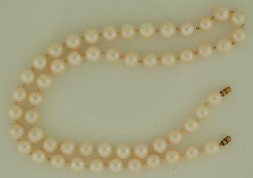 Collier med 53 flotte runde kulturperler, lås af 14 kt. guld med brillant på ca. 0,15 ct, vægt: 14,4 gr.