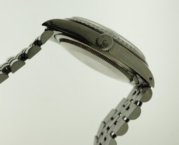 Rolex Datejust, herrearmbåndsur i stål, plexiglas, automatisk urværk, jubilee lænke. diam. 36 mm.
