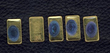 Guldbarrer 5 stk á 1 gram. 24 kt guld. 4 stk med hologram på bagsiden.