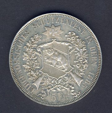 Schweiz, 5 Franken 1885 Bern - såkaldt Schützenthaler