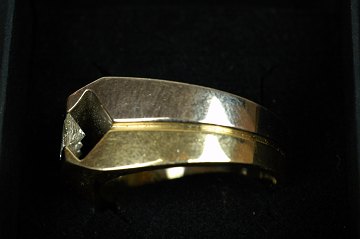 Herrering af guldholdigt metal, formodentlig af høj karat, prydet med 3 store princess cut brillanter af god kvalitet.str.68