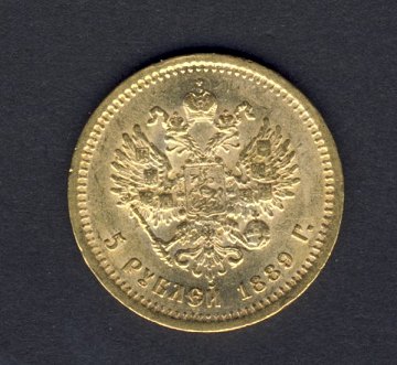 5 rubel GULD 1889 - sjælden type og pæn