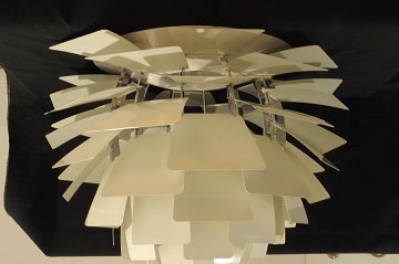 Poul Henningsen (1894-1967), Koglen, white laquered steel. Diameter 60 cm. Rather used and need some small repair.