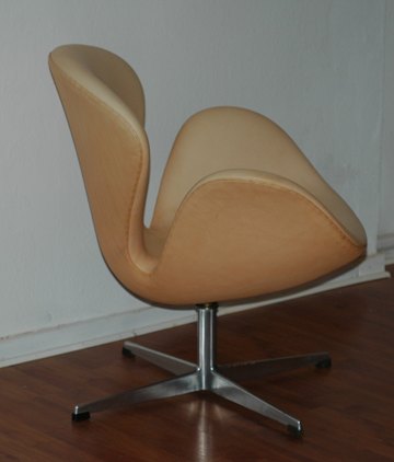 Arne Jacobsen (1902-1971), Swanchair in beige leather, The Swan is "flying" on an aluminiumstar that can turn 360 degrees.