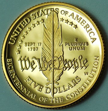USA, 5 dollars GULD 1987W Proof - KM 221 *Constitution Bicentennial*