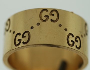 Gucci ring i 18kt guld, med det klassiske Gucci "GG" monogram, anvendes også ofte som vedhæng i en kæde, str. 54. Æske og certifikat medfølger.