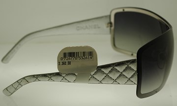 Chanel dame solbrille, med brillestænger i sølvfarvet skind, helt ny og ubrugt - nypris 3.360 kr.
