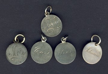 5 såkaldte "Love Tokens" fremstillet af 10 ører