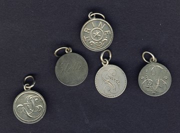 5 såkaldte "Love Tokens" fremstillet af sølvtiører