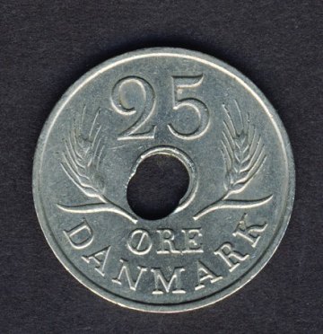 25 øre 1967 - FEJLPRÆG - hullet udstanset 2 gange