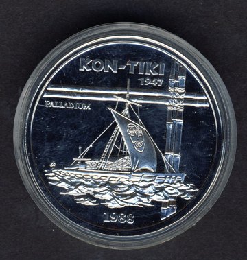 Samoa 1 oz Palladium 50 Tala 1988 Kon-Tiki Proof