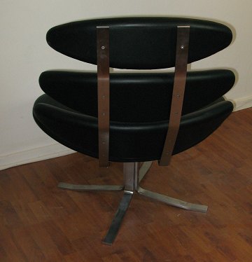 Poul M. Volther (1923-2001). Corona-stol model EJ 5, udført af fire polstrede skaller betrukket med sort læder, monteret på stel af børstet stål. Formgivet i 1961. Producent: Erik Jørgensen Møbelfabrik. H. 98 cm B. 89 cm