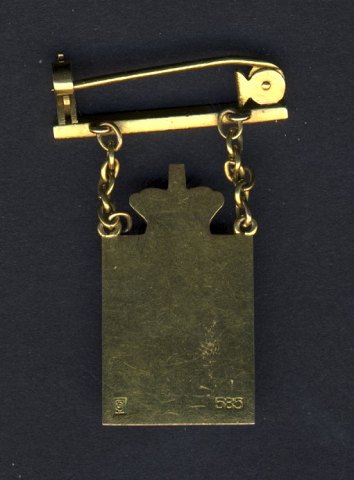 Kongemærke i GULD 14 kt. Christian X, med sikkerhedsnål ligeledes i guld.
