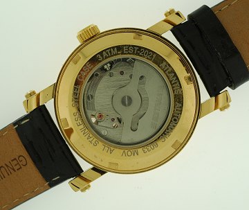 Estana Atlantis Automatic herrearmbåndsur i gulddoublé, automatisk urværk, transparent bagkapsel, læderrem. diam. 36 mm