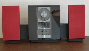 Anlægget er monteret med helt nye glaslåger (Nypris 1200 kr). Den ene højtaler har 2 mindre huller i stoffet - se foto. Sælges uden fjernbetjening. Mål: 32 x 36 x 16 cm