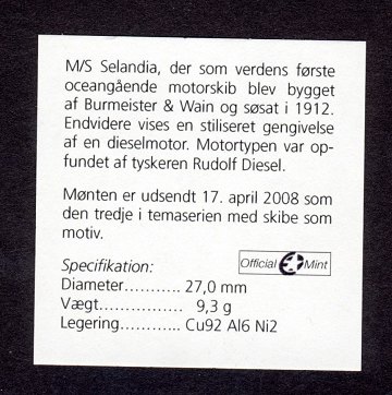 M/S Selandia 20 kr. proof - kun fremstillet i 1500 eksemplarer. Æske medfølger.