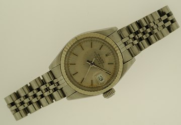 Rolex Oyster Perpetual Date, dameur i stål med lynette i hvidguld, jubileelænke, plexiglas, Oyster clasp. Diam. 25 mm
