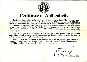 American Eagles proof sæt bestående af: 50 dollar, 25 dollar, 10 dollar og 5 dollar. Samlet: 57,5 gr. finguld.