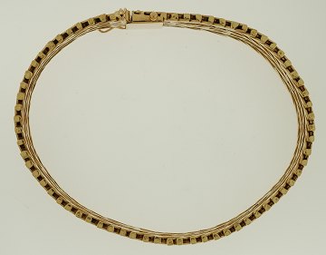 Armbånd af guld 14 kt. - L. 18,3 cm vægt: 27,7 gr. B. 1,3 cm