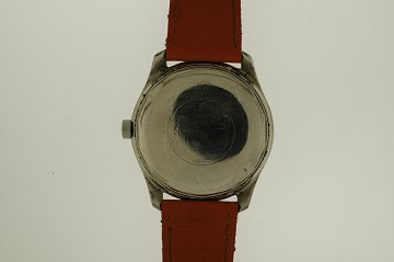 Jules Jürgensen herrearmbåndsur i stål med læderrem, datovisning, plexiglas, automatisk urværk, diam. 34 mm