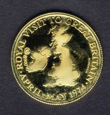 Dukat præget i anledning af det royale besøg i Storbritannien 1974 - 3,5 GULD 21,6 kt.