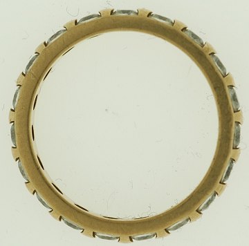 Alliancering af 9 kt. guld prydet med talrige hvide sten. vægt: 5 gr. str. 54