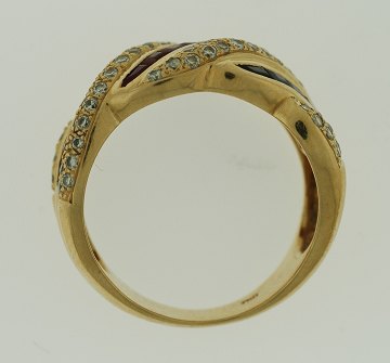 Ring af guld 18 kt. med brillanter, safirer og rubiner - enkelt række sten mangler angiveligt smaragder. str. 54 vægt: 8 gr.