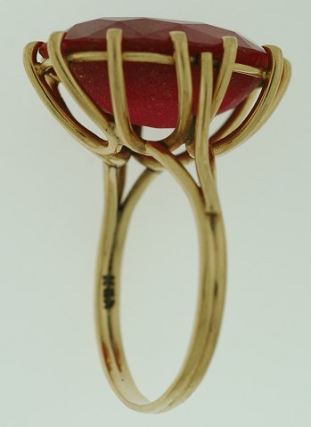 Ring af guld 14 kt. prydet med stor flot rød sten. vægt: 8,5 gr. str. 61