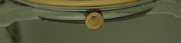 Omega herrearmbåndsur, udført i guld og stål, quartzværk, fungerende, diameter: 35mm