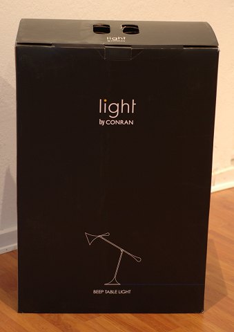 Justérbar bordlampe, designet af Terence Conran, model Beep, udført i sort metal, med håndtag i egetræ. Ubrugt og i original emballage.