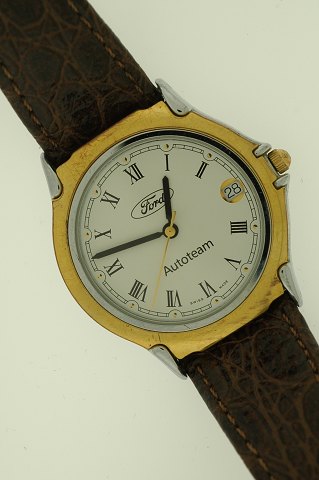 Ford Autoteam herrearmbåndsur i stål med læderrem, quartz, diam. 32 mm