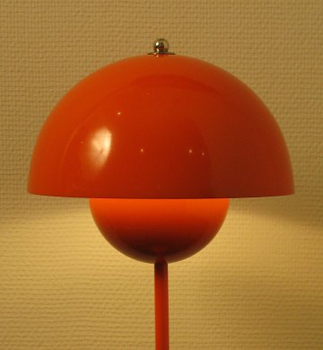 Verner Panton, FlowerPot bordlampe VP3, udført i aluminium, H. 40 cm diam. 23 cm farve: rød/orange