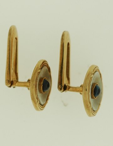 Skjorteknapper af guld 14 kt smukt prydet med perlemor. Vægt: 3 gr.