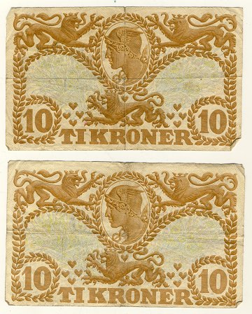 10 kr sedler 1939 og 1941 + 2 kinesiske sedler.