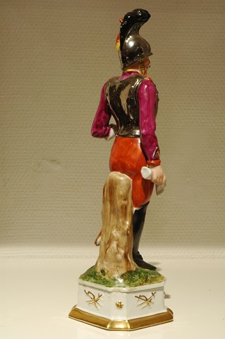 Figur af porcelæn, Capo di Monte, forestillende soldat fra Napoleonskrigene. H. ca. 30 cm